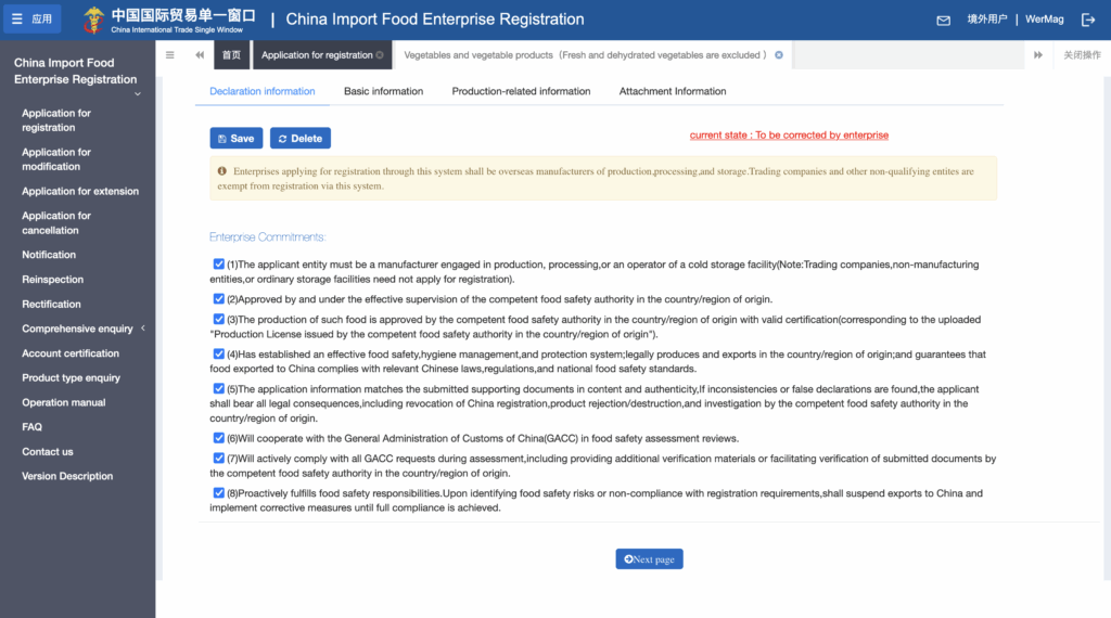 To bardzo ważne ułatwienie.Dla wszystkich ww. kategorii z wyjątkiem warzyw, produktów zbożowych i herbat, zniesiono obowiązek wpisywania szczegółowych informacji o produktach w sekcji „Produkty przeznaczone do rejestracji w Chinach”(Products to be registered/added to China). Nie trzeba już podawać kodów HS ani kodów CIQ (kod inspekcji i kwarantanny).